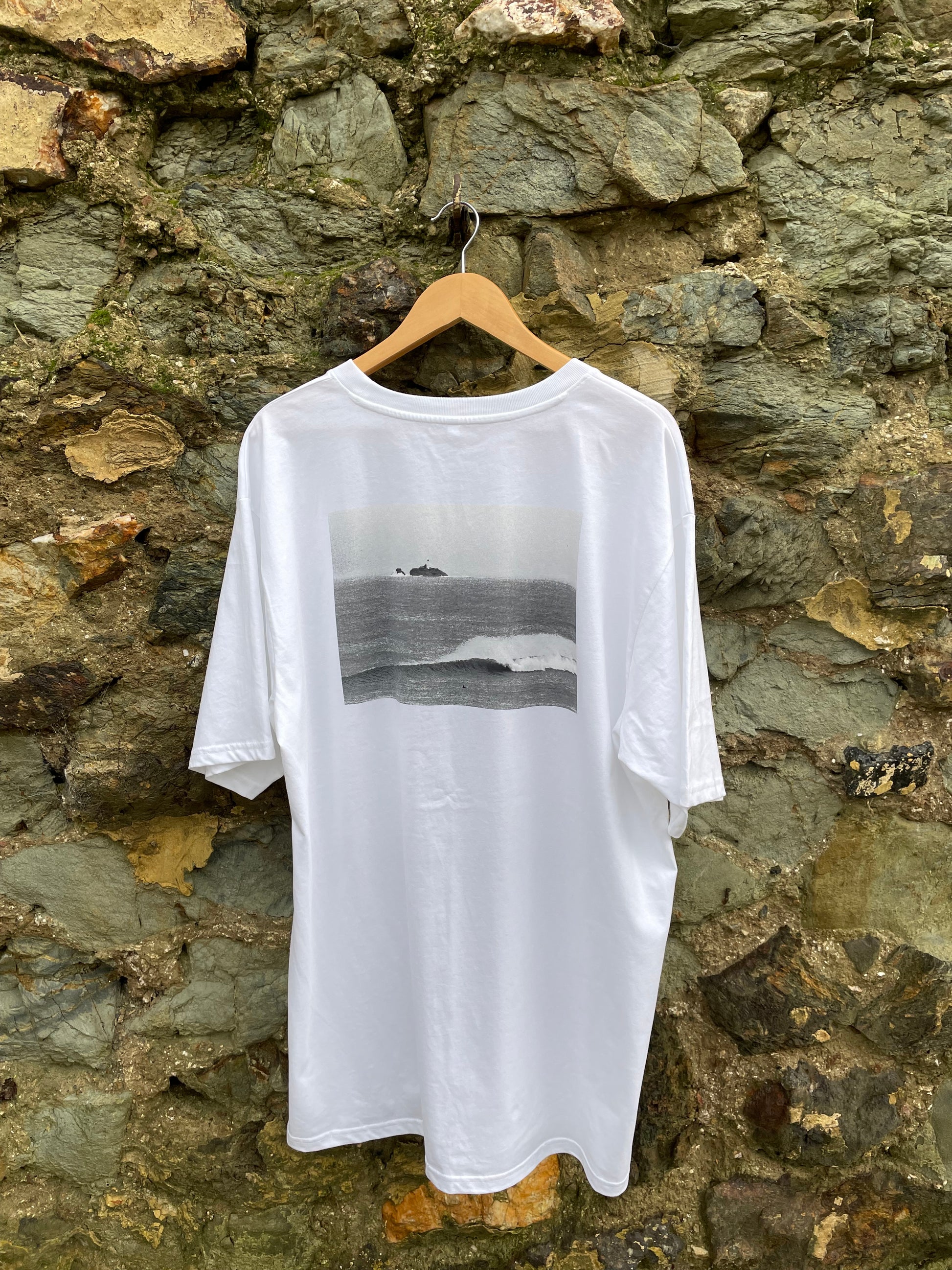 High quality Image of Godrevy Lighthouse on the back of the T-Shirt.